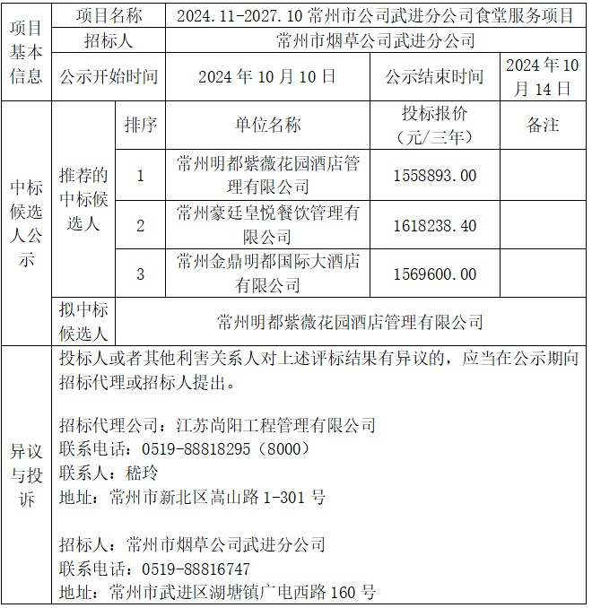2024.11-2027.10常州市公司武進(jìn)分公司食堂服務(wù)項(xiàng)目中標(biāo)候選人公示