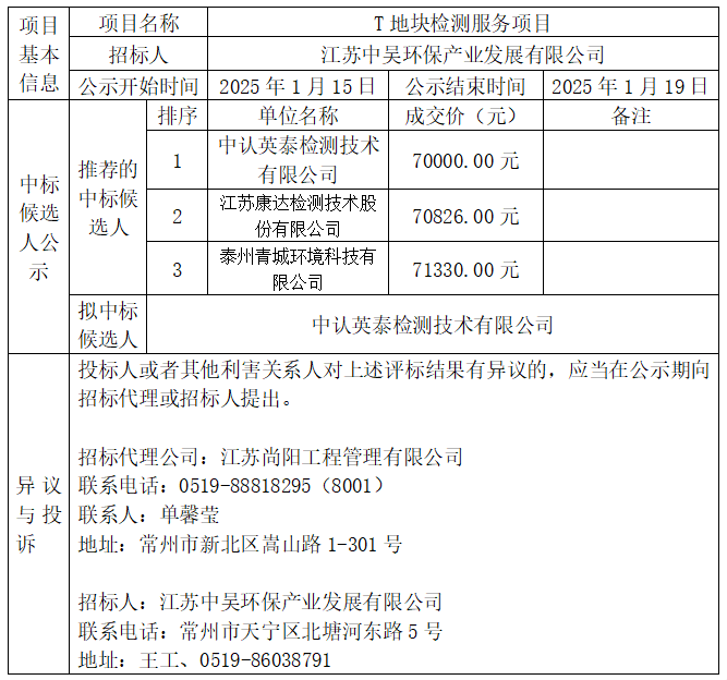 T地塊檢測服務(wù)項目成交候選人公示
