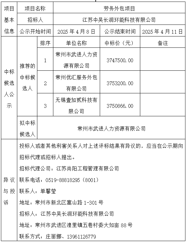 勞務(wù)外包項(xiàng)目中標(biāo)候選人公示