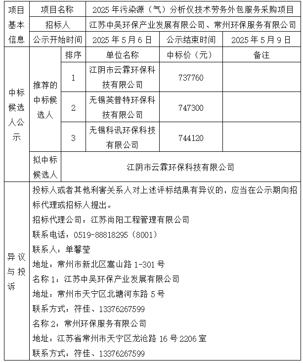 2025年污染源(氣)分析儀技術(shù)勞務(wù)外包服務(wù)采購項(xiàng)目中標(biāo)候選人公示
