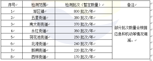 本項(xiàng)目擬確定八家供應(yīng)商,根據(jù)成交排名順序依次分別完成序號(hào)1至8檢測(cè)范圍內(nèi)的食品抽檢任務(wù)。