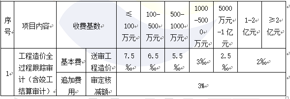 2.工程結(jié)算審核:常州經(jīng)開區(qū)政府性投資項(xiàng)目審計(jì)咨詢服務(wù)費(fèi)計(jì)算標(biāo)準(zhǔn)(2017年)*100%,當(dāng)核減(增)額超過送審造價(jià)的10%時(shí),超過部分的審計(jì)費(fèi)用由施工單位承擔(dān);不計(jì)取基本收費(fèi)。