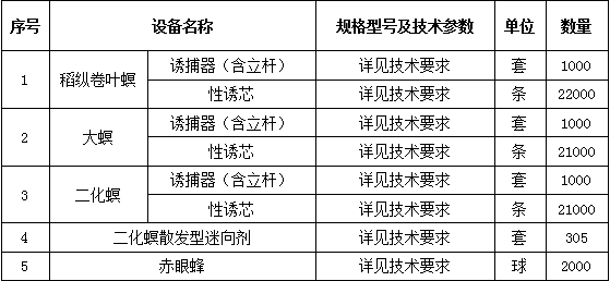 本項目為2020年水稻病蟲綠色防控物資采購項目,包括但不限于招標文件及其基本技術(shù)要求范圍內(nèi)相應(yīng)貨物制造前的準備(包括現(xiàn)場踏勘、技術(shù)核對等)、設(shè)計、制作、包裝、保險、運輸、裝卸、安裝、調(diào)試、培訓(xùn)、驗收、保修等全部工作內(nèi)容,采購清單如下: