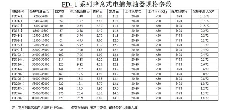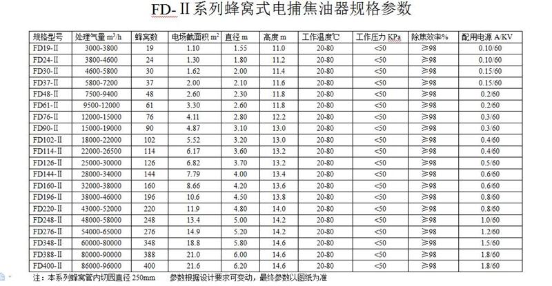 蜂窩式電捕焦油器殼體采用圓筒式結(jié)構(gòu),內(nèi)件沉淀極所采用結(jié)構(gòu)形式類似蜂窩式,蜂窩式的結(jié)構(gòu)是將通道截面為正六邊形。兩個相鄰正六邊形共用一條邊,即靠中間的正六邊形的六條邊均被包圍它的六個正六邊形所共用。用2-3mm的鋼板制成的蜂窩板即可滿足工藝和機械強度的要求。設(shè)備殼體由筒體、器頂封頭與器底斜底組合而成。整個除焦器分為上、中、下3 段, 上、中部為高壓靜電場, 下部為集焦油室。浸漬罐煙氣由下端側(cè)面進入, 凈化后的潔凈氣體由上端頂部由風機排出, 除塵器底部留有人孔維修方便。下端進氣口設(shè)有2 層多孔板型氣流分布板, 使氣體在電場中均勻分布, 中部為高4-5m 的高壓靜電場。 其原理即在金屬導(dǎo)線與金屬管壁(沉淀極板)間施加高壓直流電,使陰陽極之間形成電暈區(qū)。當含焦油霧滴等雜質(zhì)的氣體通過該電場時,吸附了負離子和電子雜質(zhì)在電場庫倫力的作用下,移動到沉淀極后釋放出所帶電荷,并吸附于沉淀極上,當吸附于沉淀極上的雜質(zhì)量增加到大于其附著力時,會自動向下流并從電捕焦油器底部排出,從而達到凈化氣體的目的。蜂窩式電捕焦油器與其他焦油器相比,由于蜂窩式電捕焦油器具有結(jié)構(gòu)緊湊合理、沒有電場空穴,具有筒徑小,占地少,有效截面(氣凈化工作面)大,氣體處理量大成本低,電耗小,收焦油量大且油質(zhì)優(yōu)良,凈化效率高,處理后各種污染物可達標排放的優(yōu)點。達到的技術(shù)指標,可明顯改善操作環(huán)境。